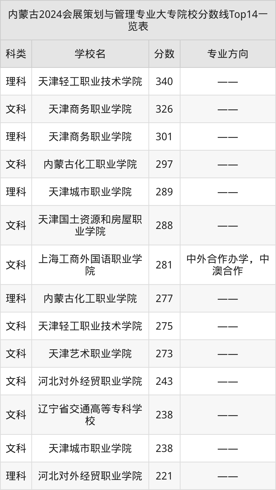 上述院校为有排名的院校,下面根据2024年会展策划与管理专业大专招生计划表,列举全部招生院校名单(不同省份招生院校名单及数量有差异,这里以浙江高考为例):