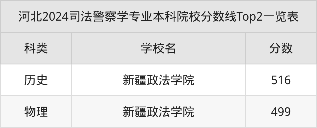 物理类最低收分为499分,对应的招生院校是新疆政法学院。结合上述分析,物理类考生比历史类考生更容易上司法警察学本科院校。