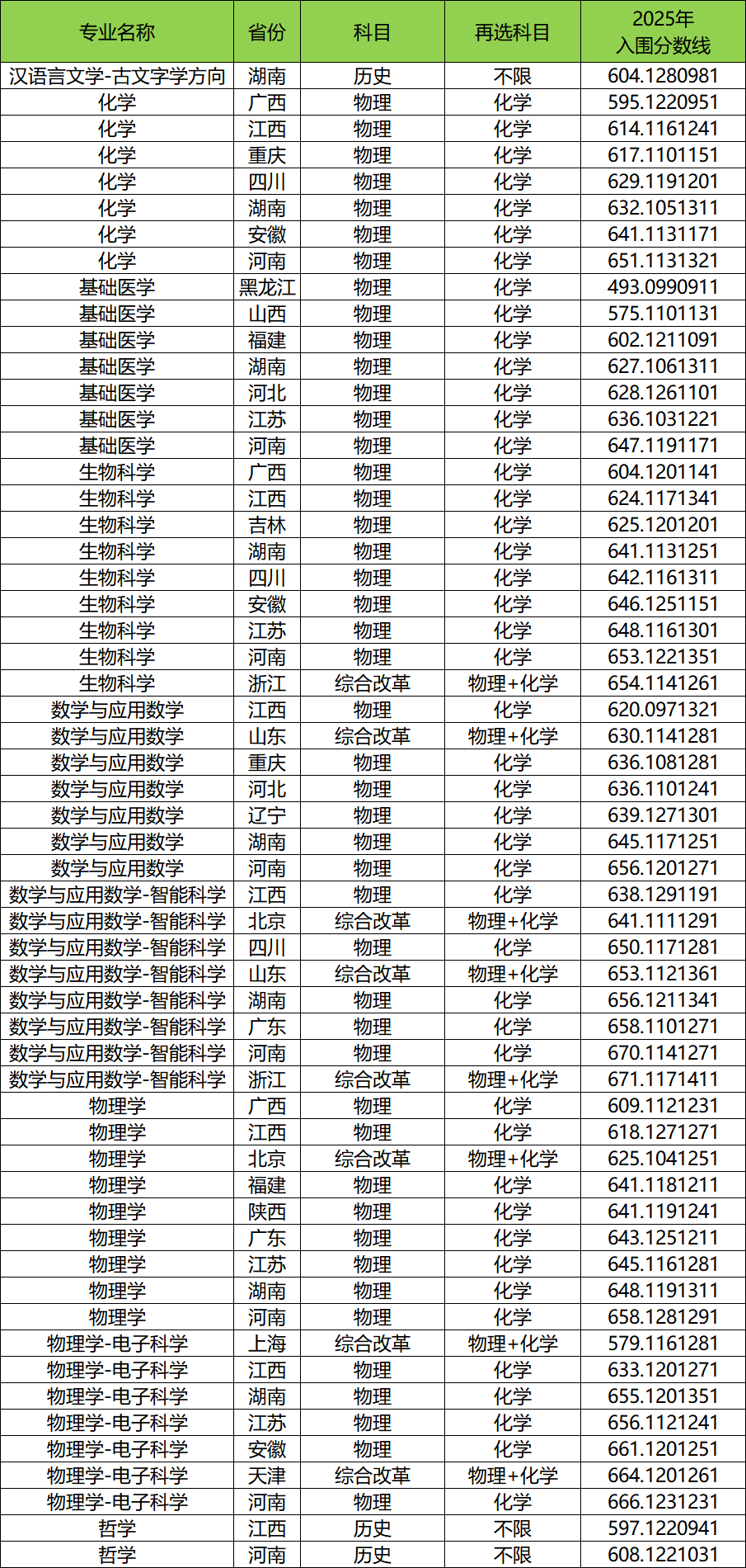 吉林:最低625.120120125分入围,生物科学;