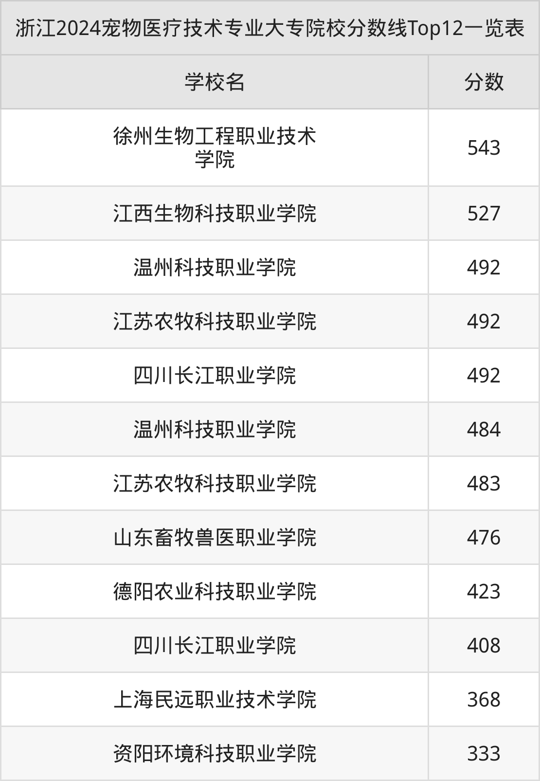 宠物医疗技术专业大专院校实力排名靠前的有江苏农牧科技职业学院、江苏农林职业技术学院、山东畜牧兽医职业学院等。2024年大专宠物医疗技术专业招生最低分数为333分。