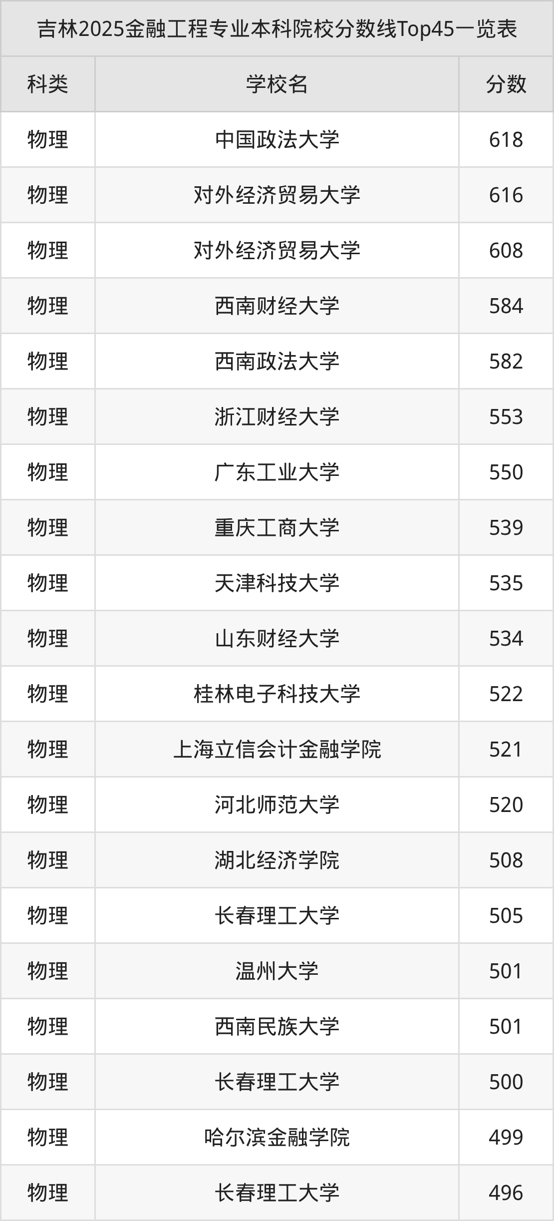 三、金融工程本科大学2025录取分数线