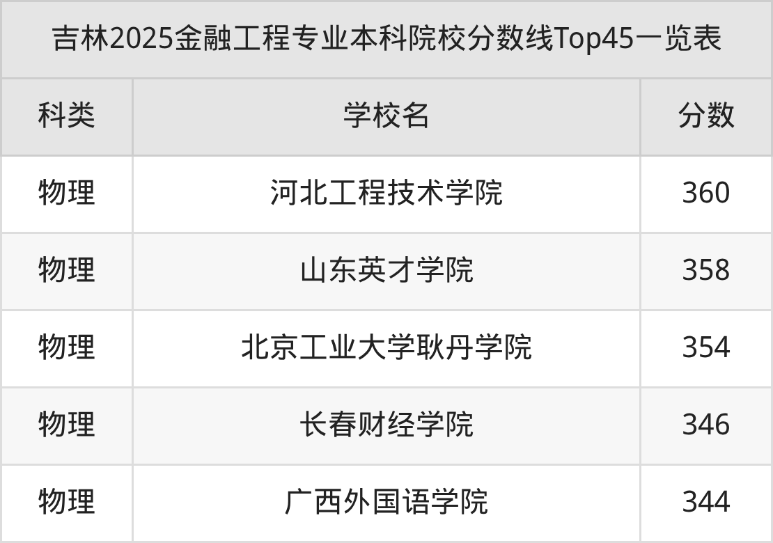 金融工程专业本科院校实力排名靠前的有中国人民大学、对外经济贸易大学、南开大学等。2025年本科金融工程专业招生最低分数为344分(物理类)。