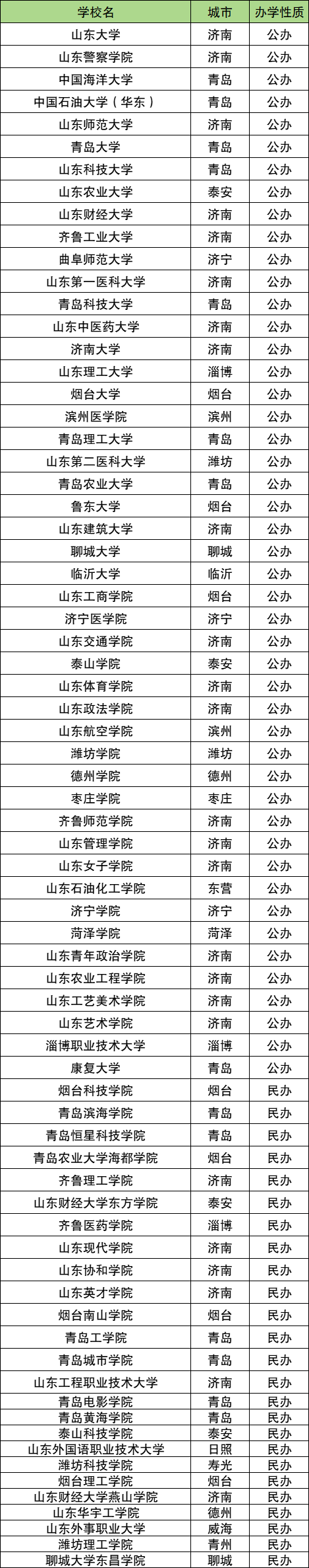 3、烟台(7所):烟台大学、鲁东大学、山东工商学院、烟台科技学院、青岛农业大学海都学院、烟台南山学院、烟台理工学院;
