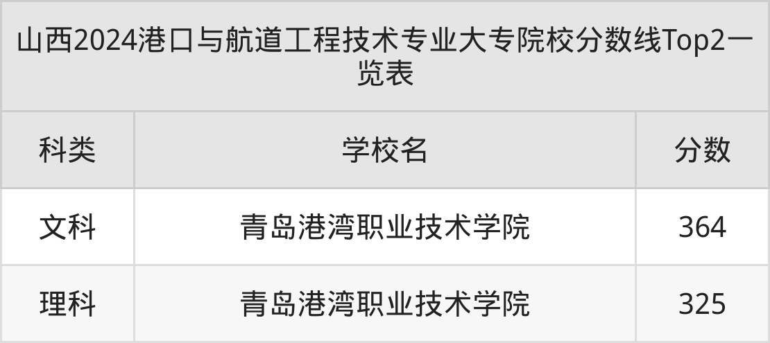 理科最低收分为325分,对应的招生院校是青岛港湾职业技术学院。结合上述分析,理科考生比文科考生更容易上港口与航道工程技术大专院校。