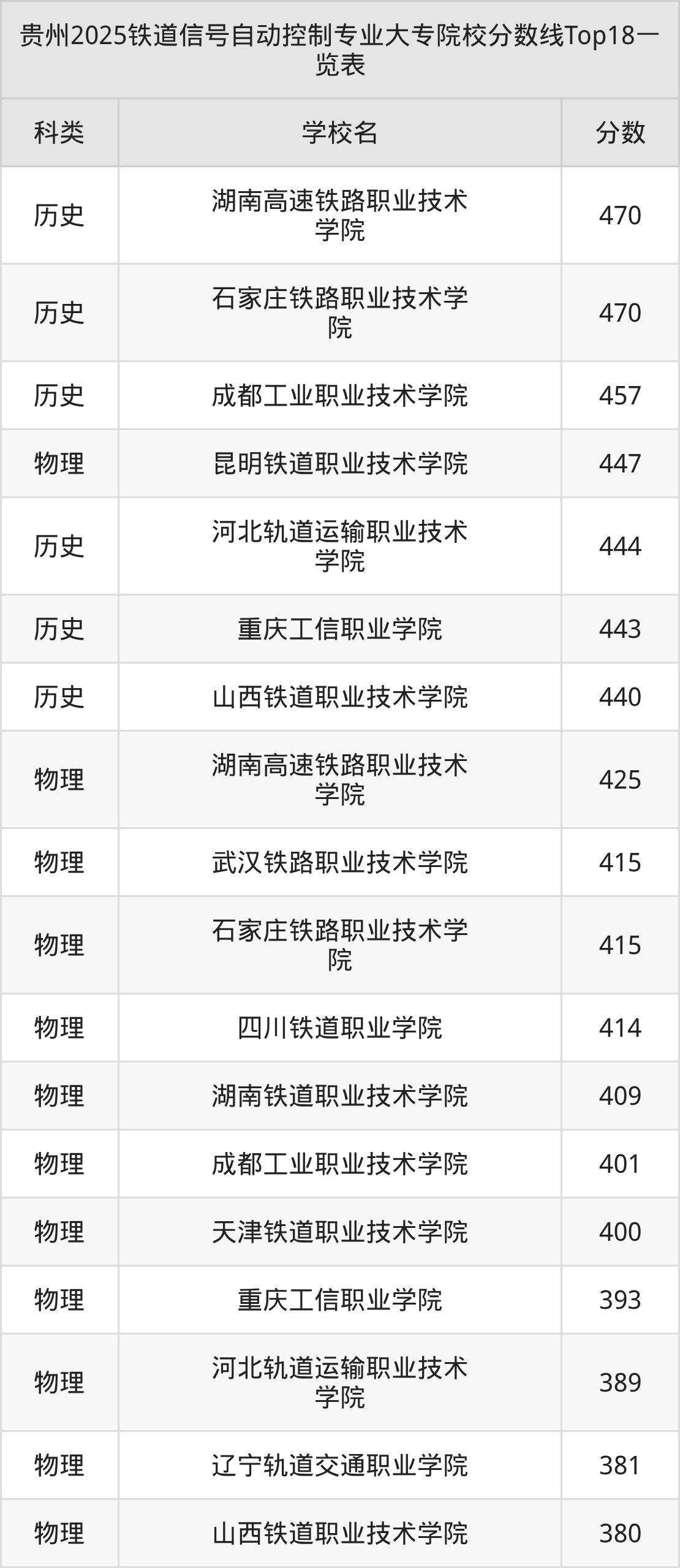 三、铁道信号自动控制大专2025录取分数线