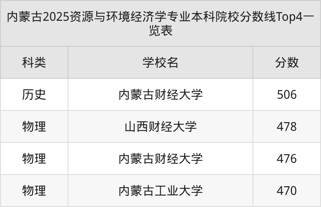 全国本科院校资源与环境经济学专业历史类最低收分为506分,对应的招生院校是内蒙古财经大学。