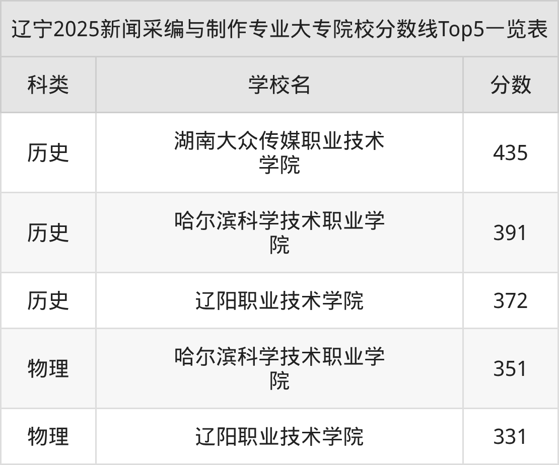 三、新闻采编与制作大专2025录取分数线
