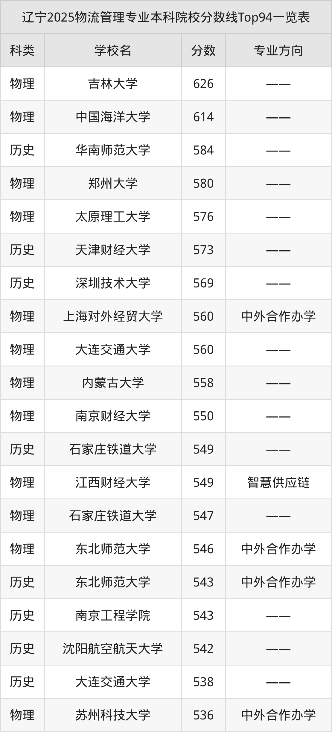 三、物流管理本科大学2025录取分数线