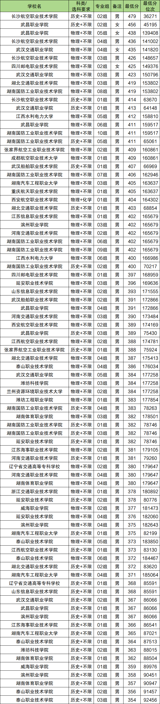 1、渤海船舶职业学院:最低392分
