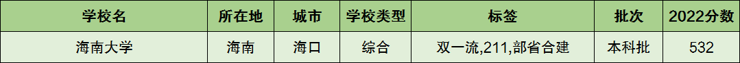 此外下表中还整理了海南省双一流大学的分数及名单。