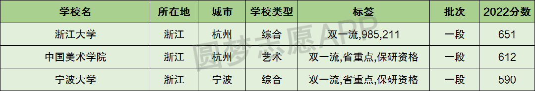 此外下表中还整理了浙江省双一流大学的分数及名单。