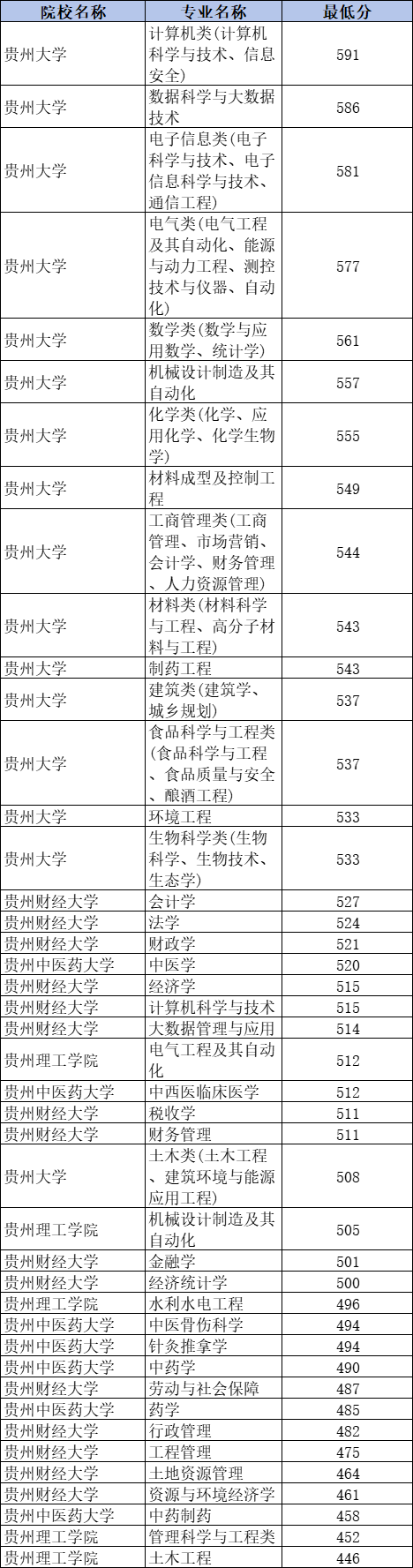参考2024年数据,贵州地方专项计划大学录取分数线为:历史类523分-589分、物理类446分-591分,具体分科类录取情况如下: