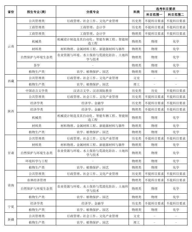 | 云南 | 理科 | 自然保护与 环境生态类 |