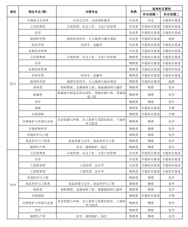 | 贵州 | 物理 | 茶学 | 570 |