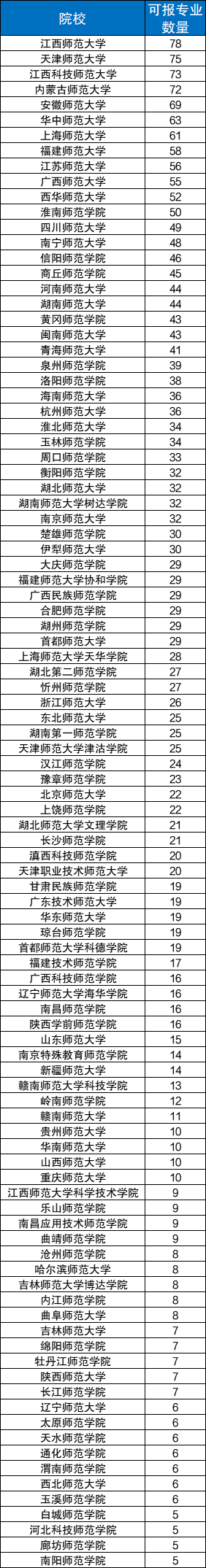 (本文篇幅有限,只列举专业数量排名前100的大学)
