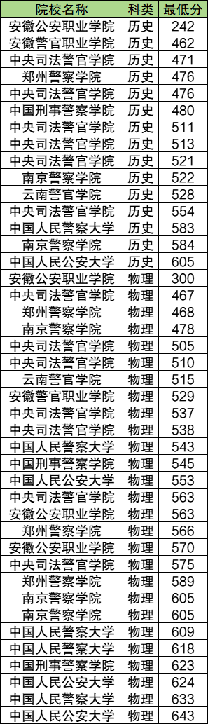 2024年警校在安徽提前批的录取分数线为:历史类242分-605分、物理类300分-643分。