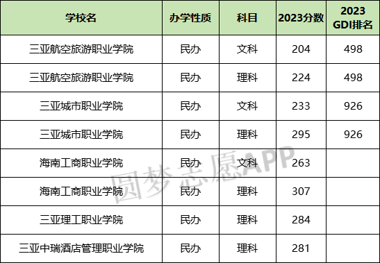 下表为2023年海南省各民办专科院校的排名和录取分数