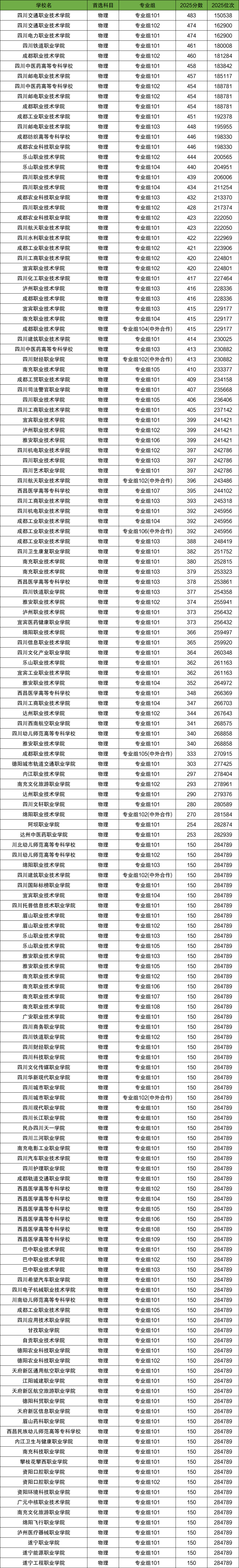 2、四川物理类(专科大学最低录取分数线150分)