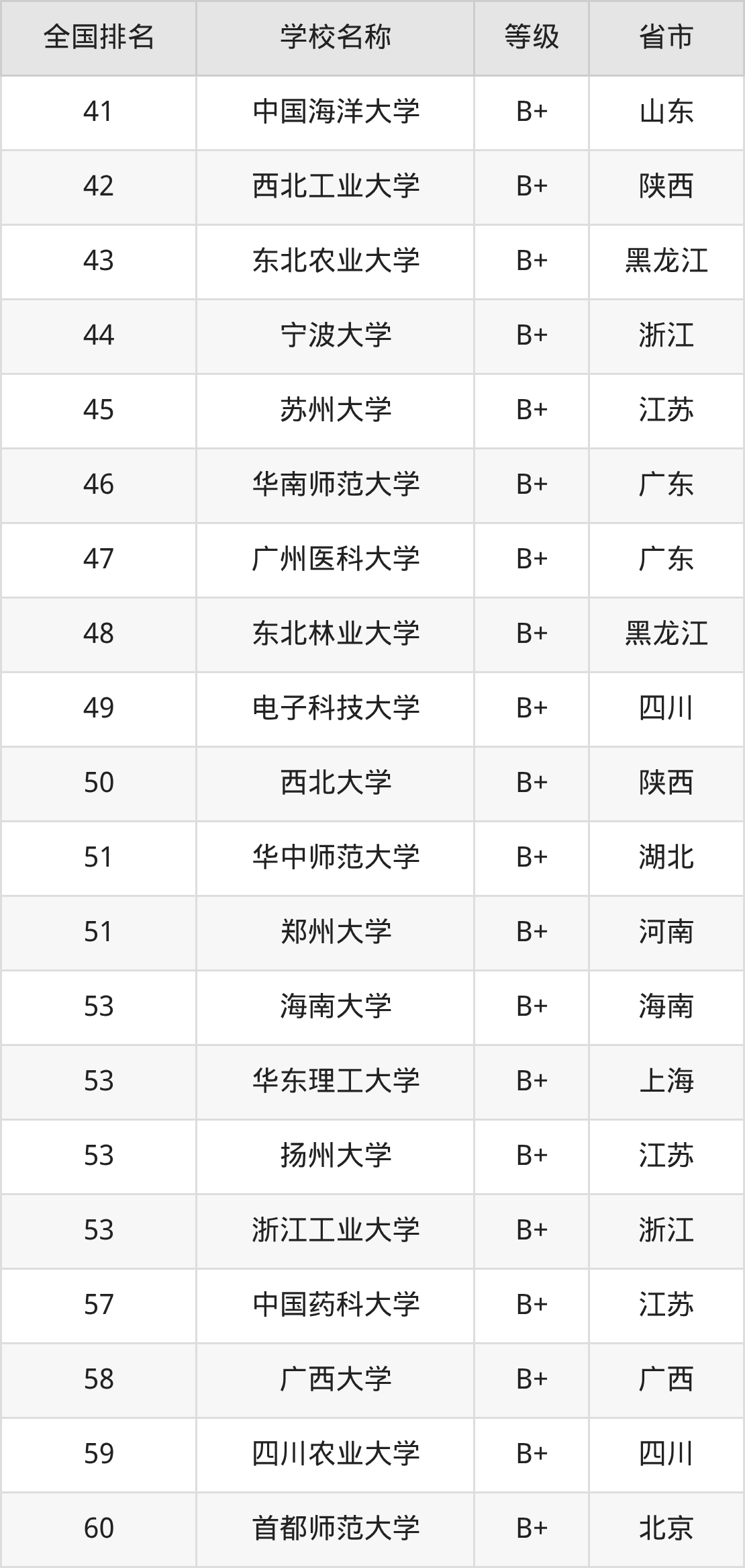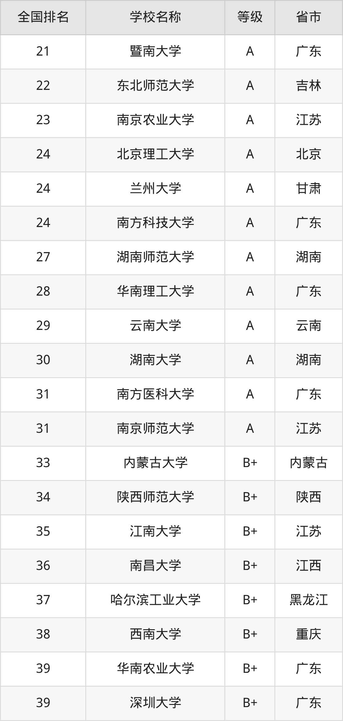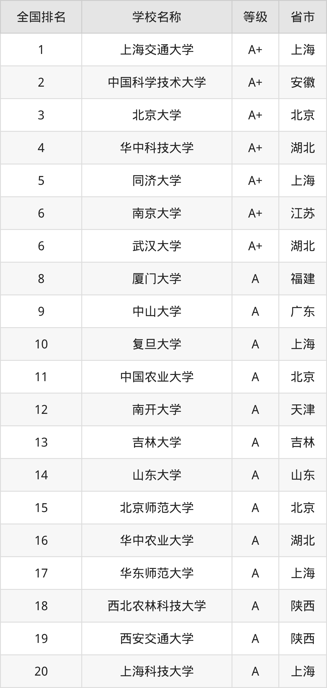 下面是生物技术专业全国排名前10的大学名单及实力评级: