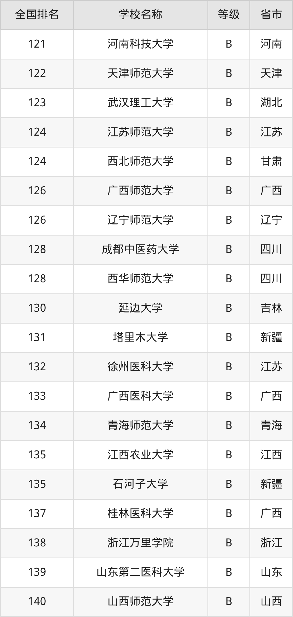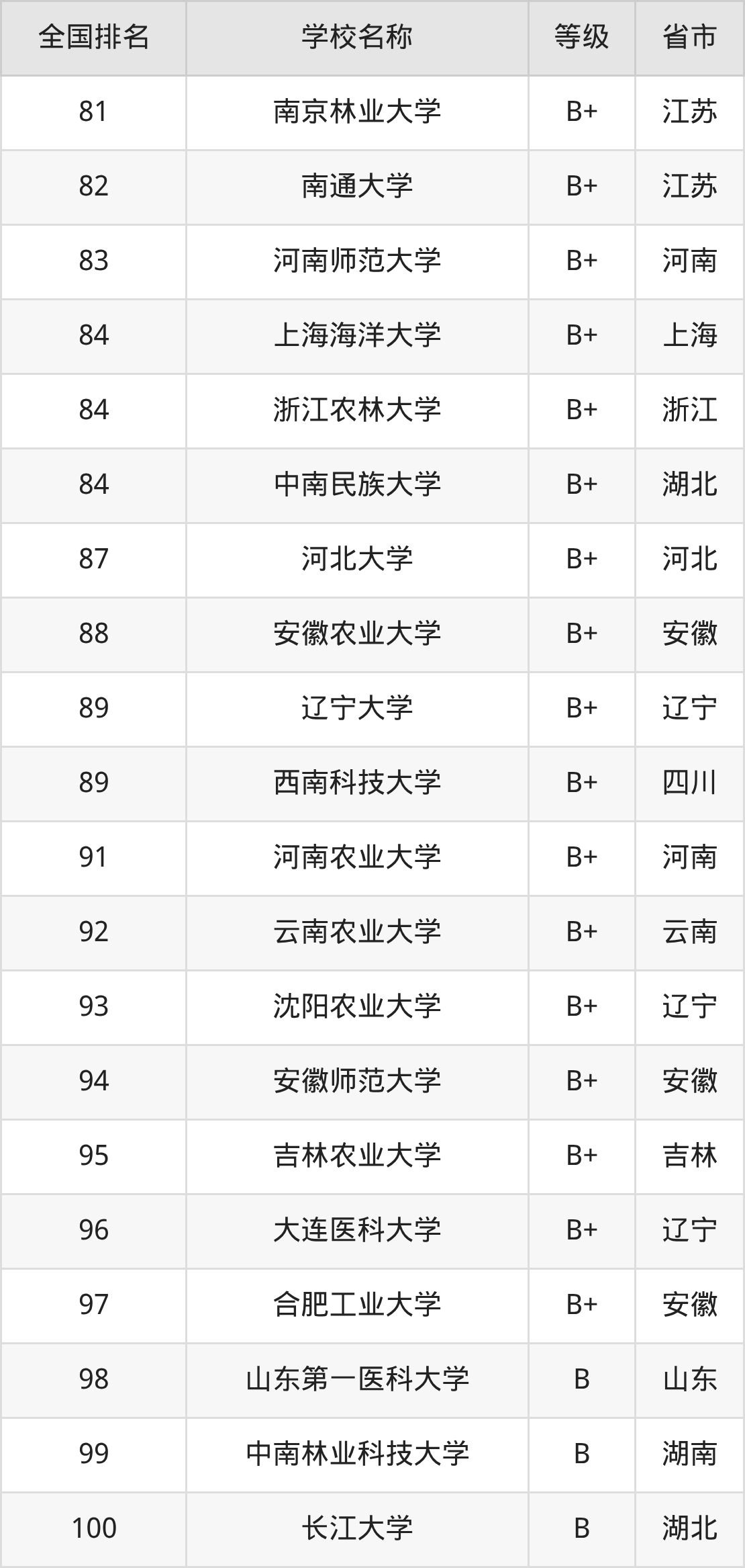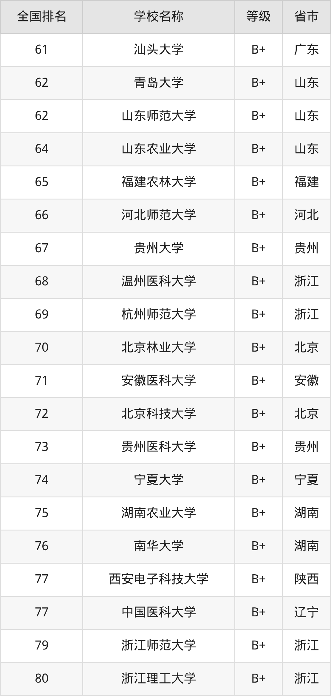 下面是生物技术专业全国排名前10的大学名单及实力评级: