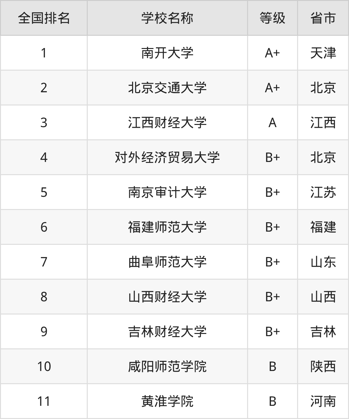全国数据科学开设院校参与排名的共有11所,实力最强的是南开大学(全国排名第1名),其专业实力等级被评为A+级。