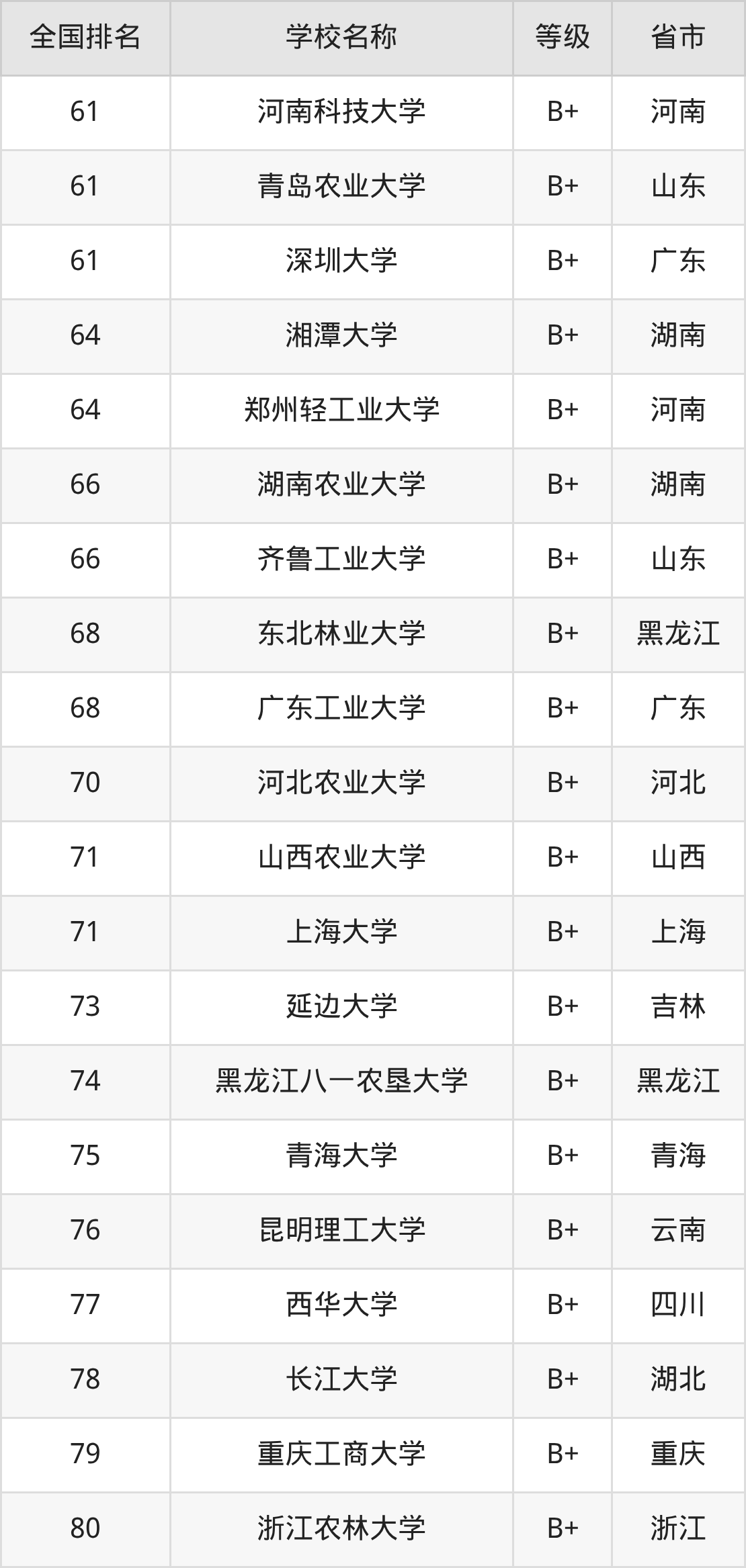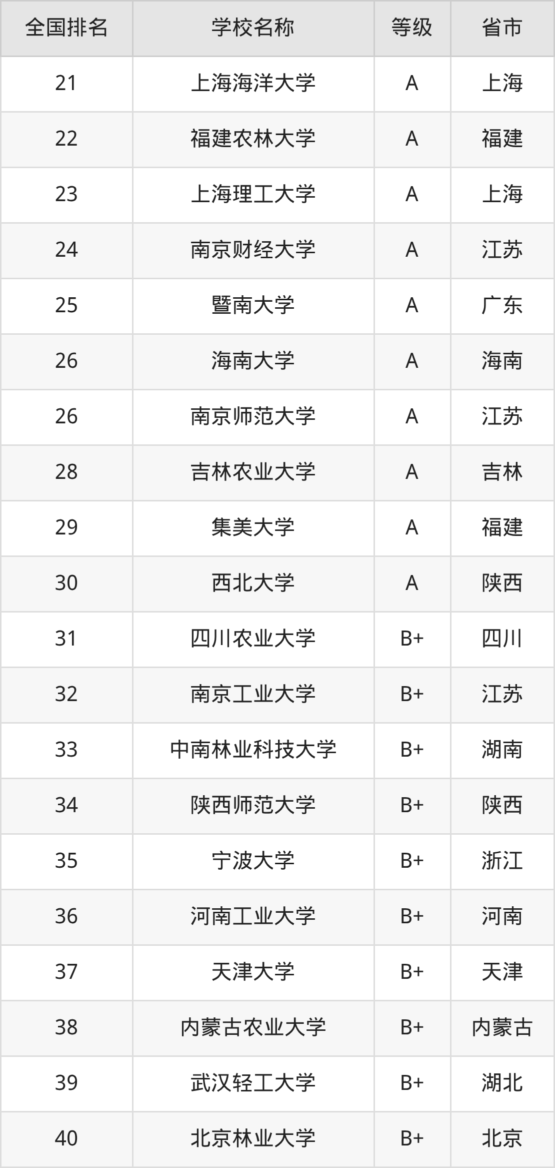下面是食品科学与工程专业全国排名前10的大学名单及实力评级: