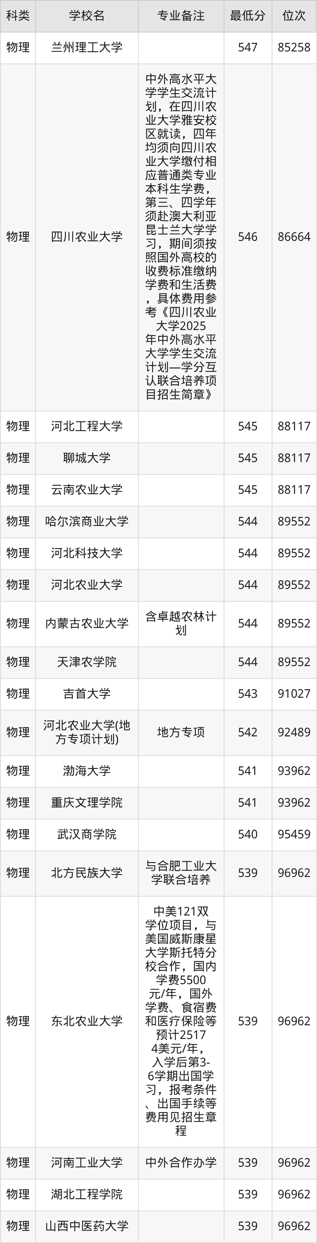 下面是2025年食品科学与工程录取分数线Top100一览表: