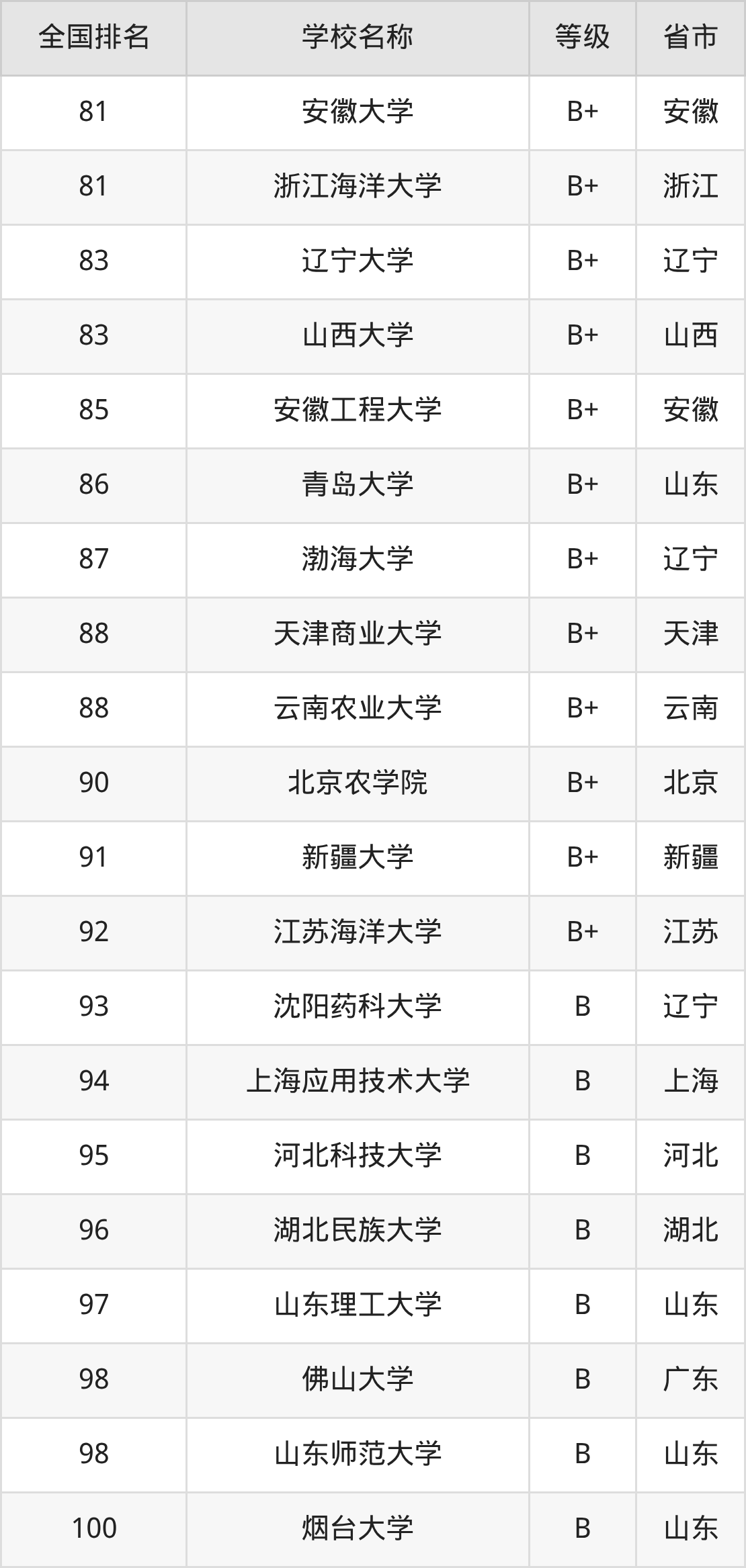 最新排名表可直接见下: