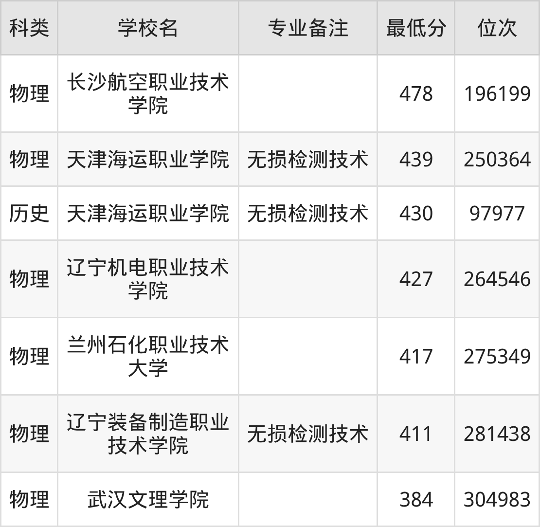 理化测试与质检技术专业分数最低的民办大学是武汉文理学院,其2025年最低分为384分,考生只要超专科线184分即有概率能被录取。