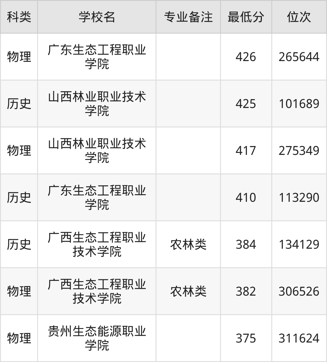 2025年全国大学林业技术录取分数线在375分~426分之间。数据显示,考生如果想报考公办大学,分数要在375分及以上,最低分院校有贵州生态能源职业学院等。