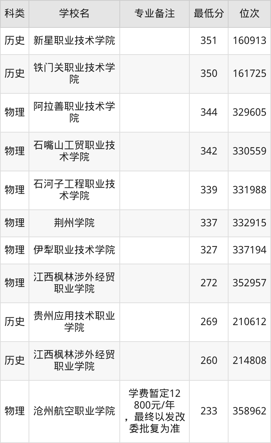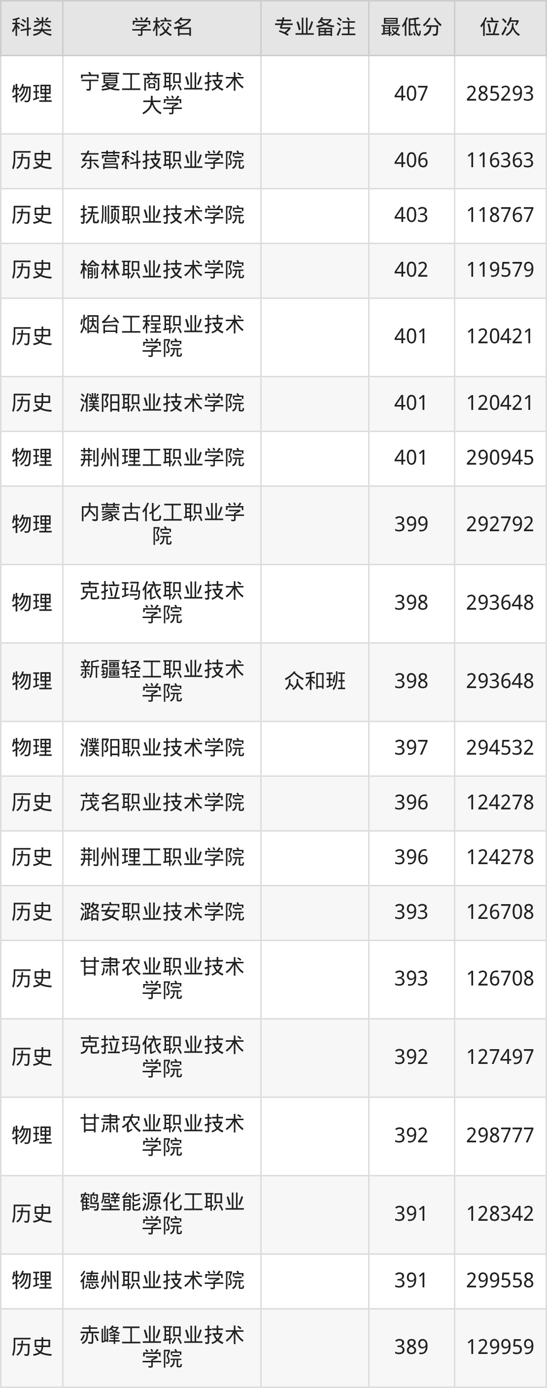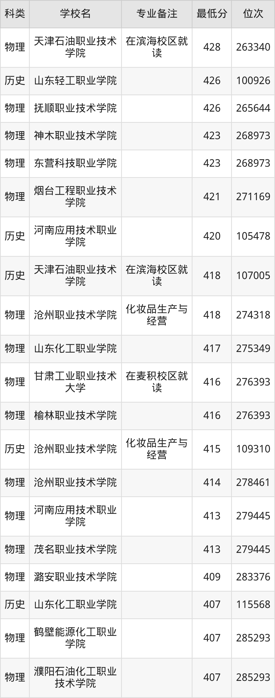 二、应用化工技术2025年录取分数线