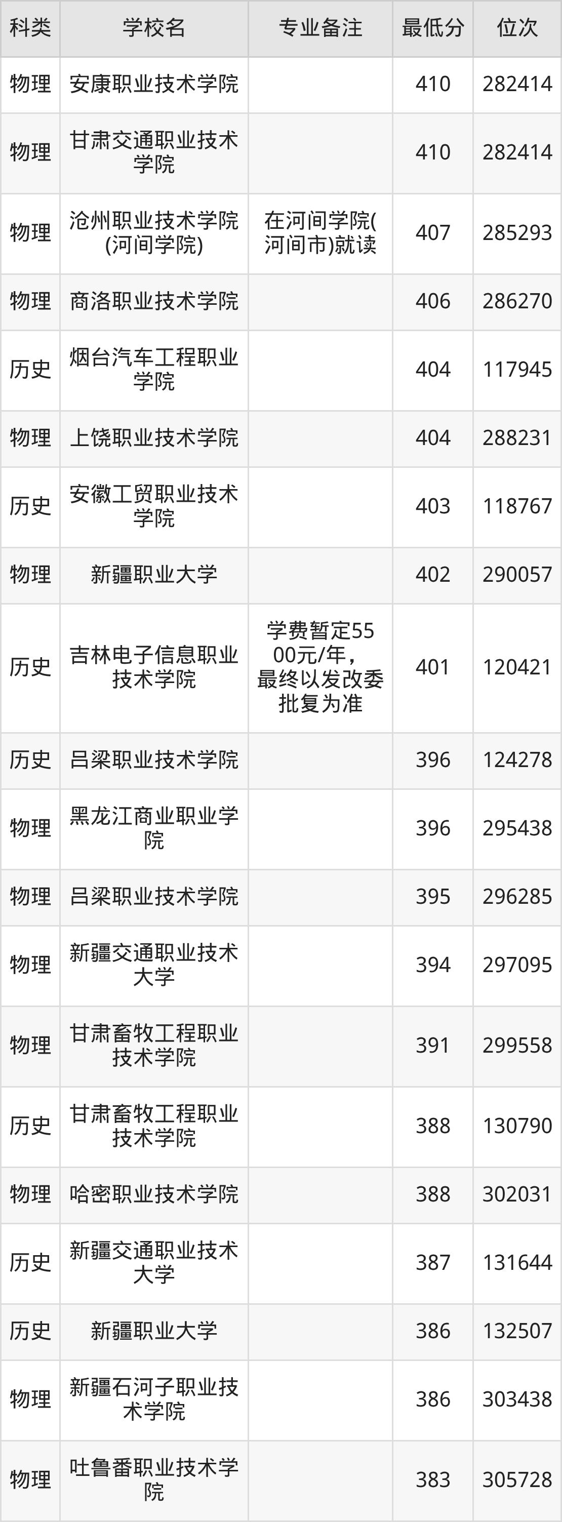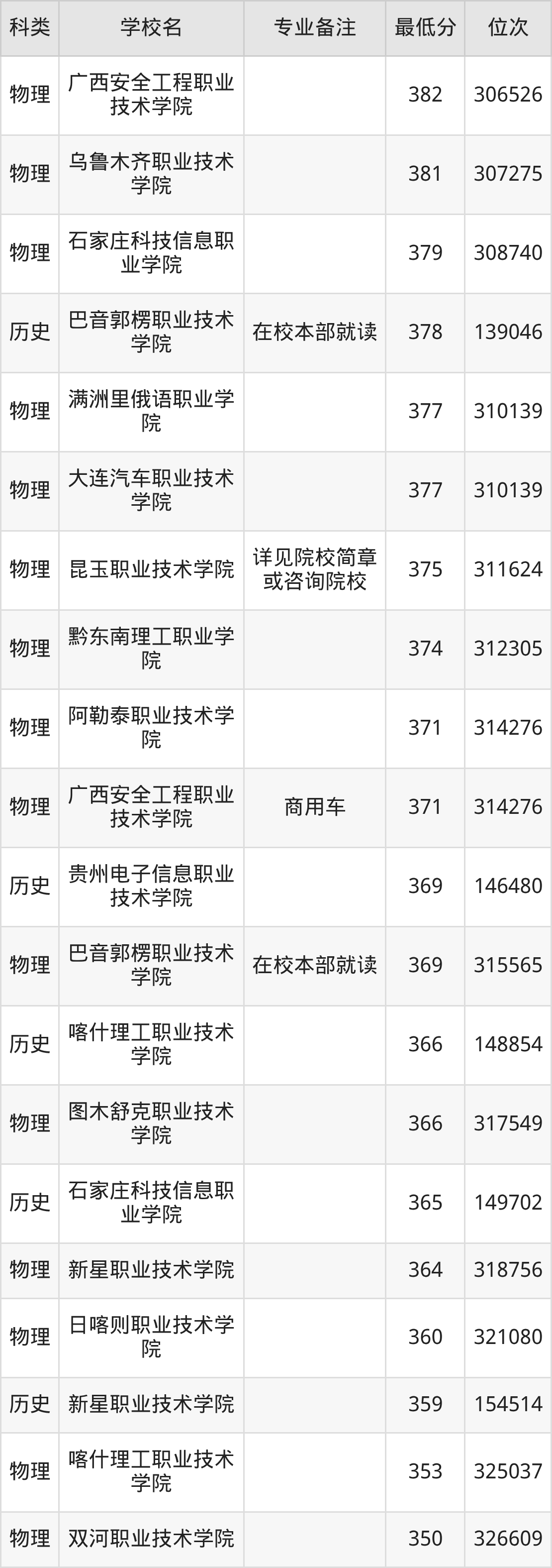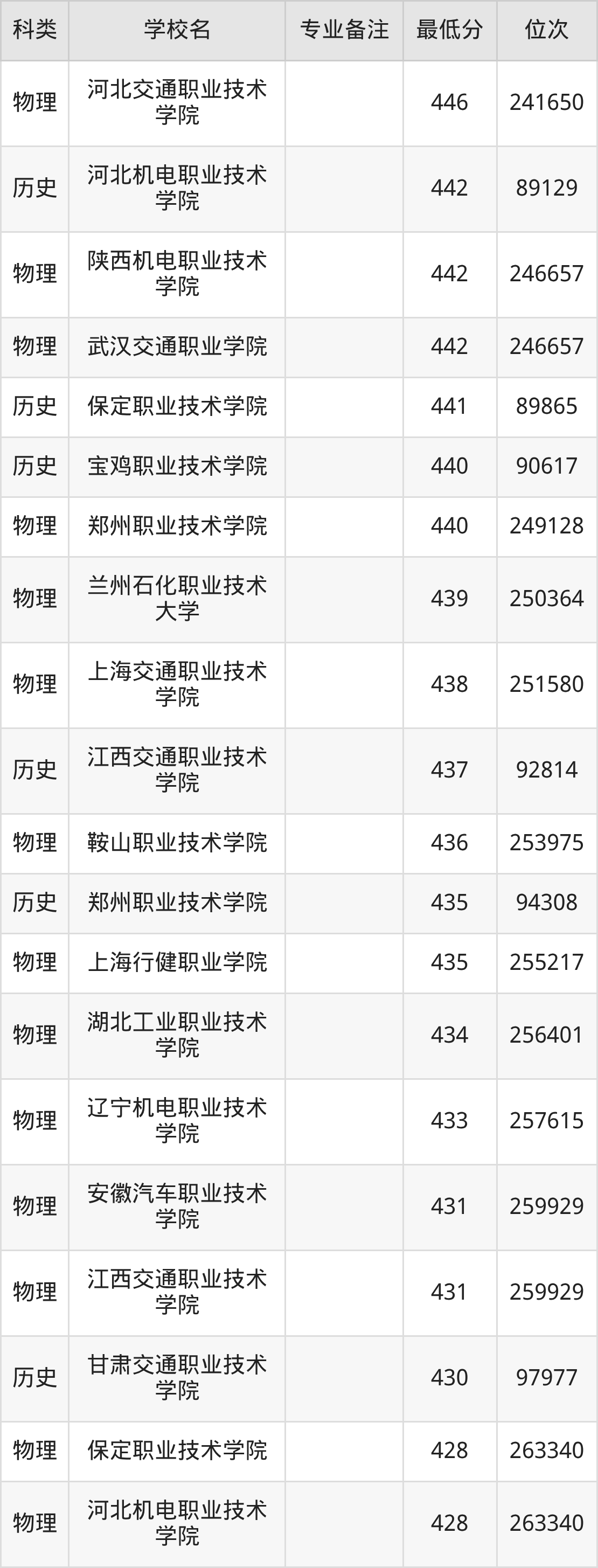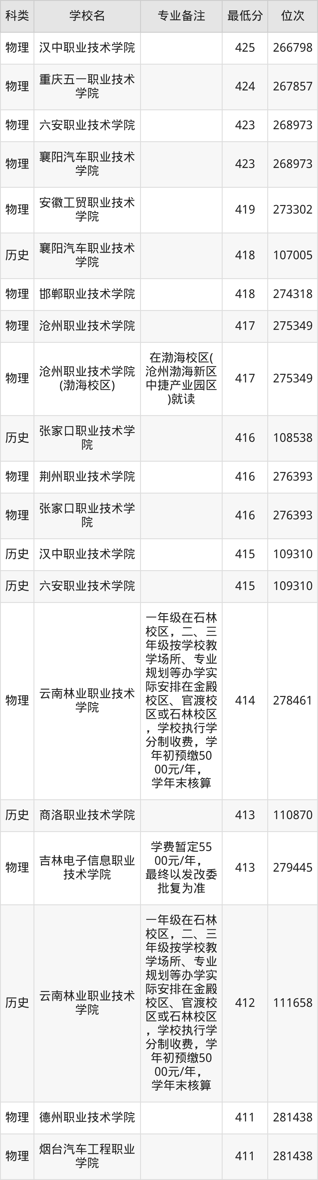 下面是2025年汽车检测与维修技术录取分数线Top100一览表: