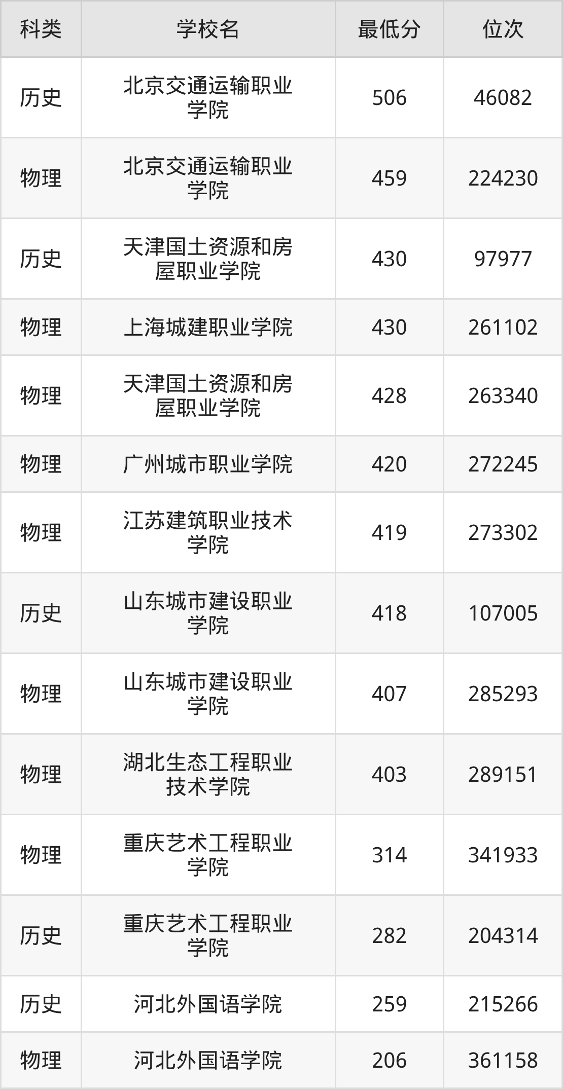 古建筑工程技术专业分数最低的民办大学是河北外国语学院,其2025年最低分为206分,考生只要超专科线6分即有概率能被录取。