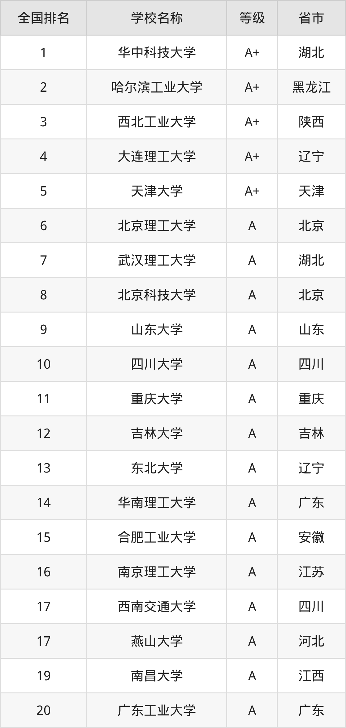 1、华中科技大学(A+级)