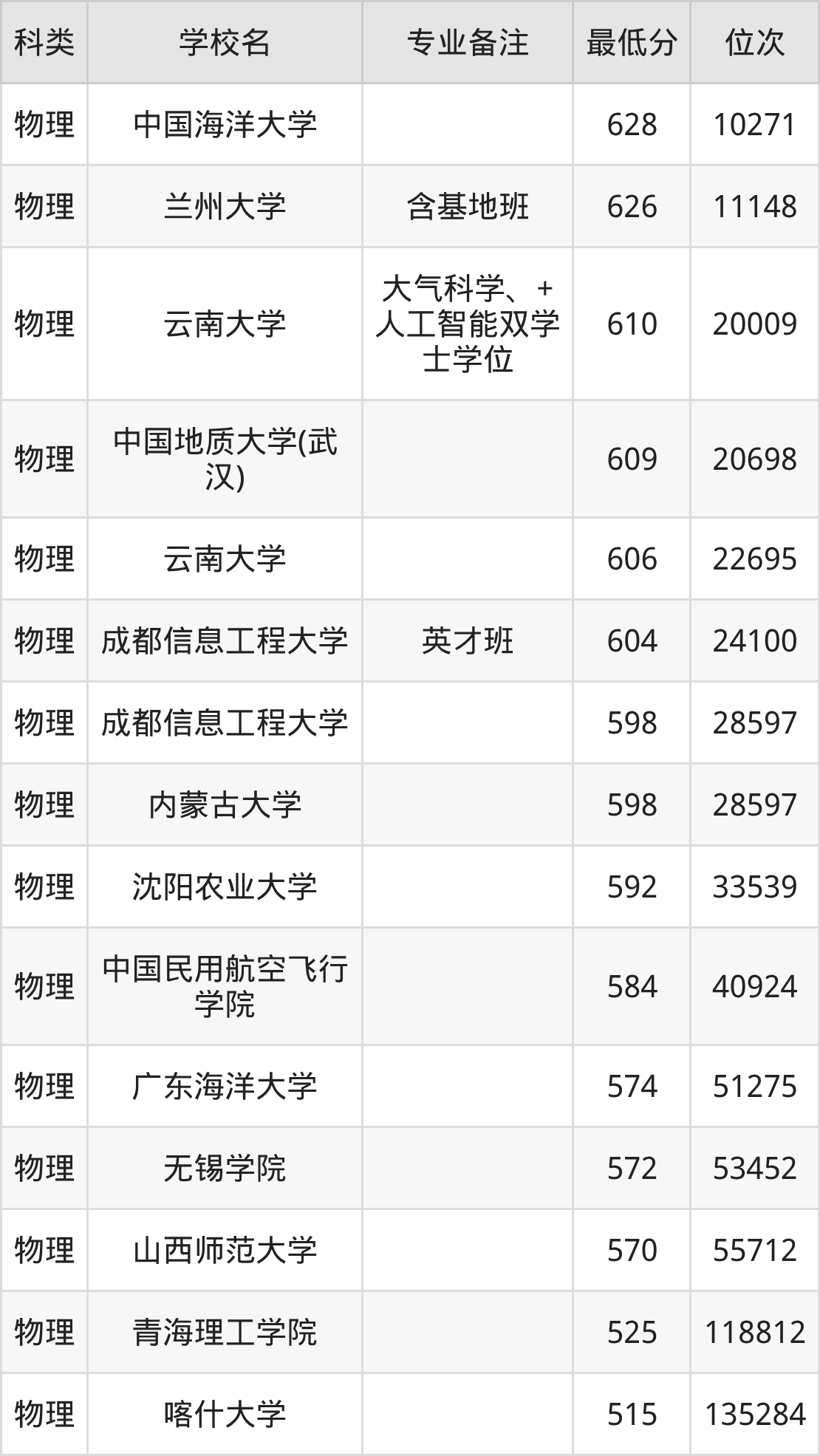 2025年全国大学大气科学录取分数线在515分~628分之间。数据显示,考生如果想报考公办大学,分数要在515分及以上,最低分院校有喀什大学等。