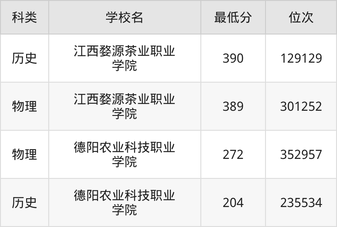 下面是2025年茶叶生产与加工技术录取分数线Top4一览表: