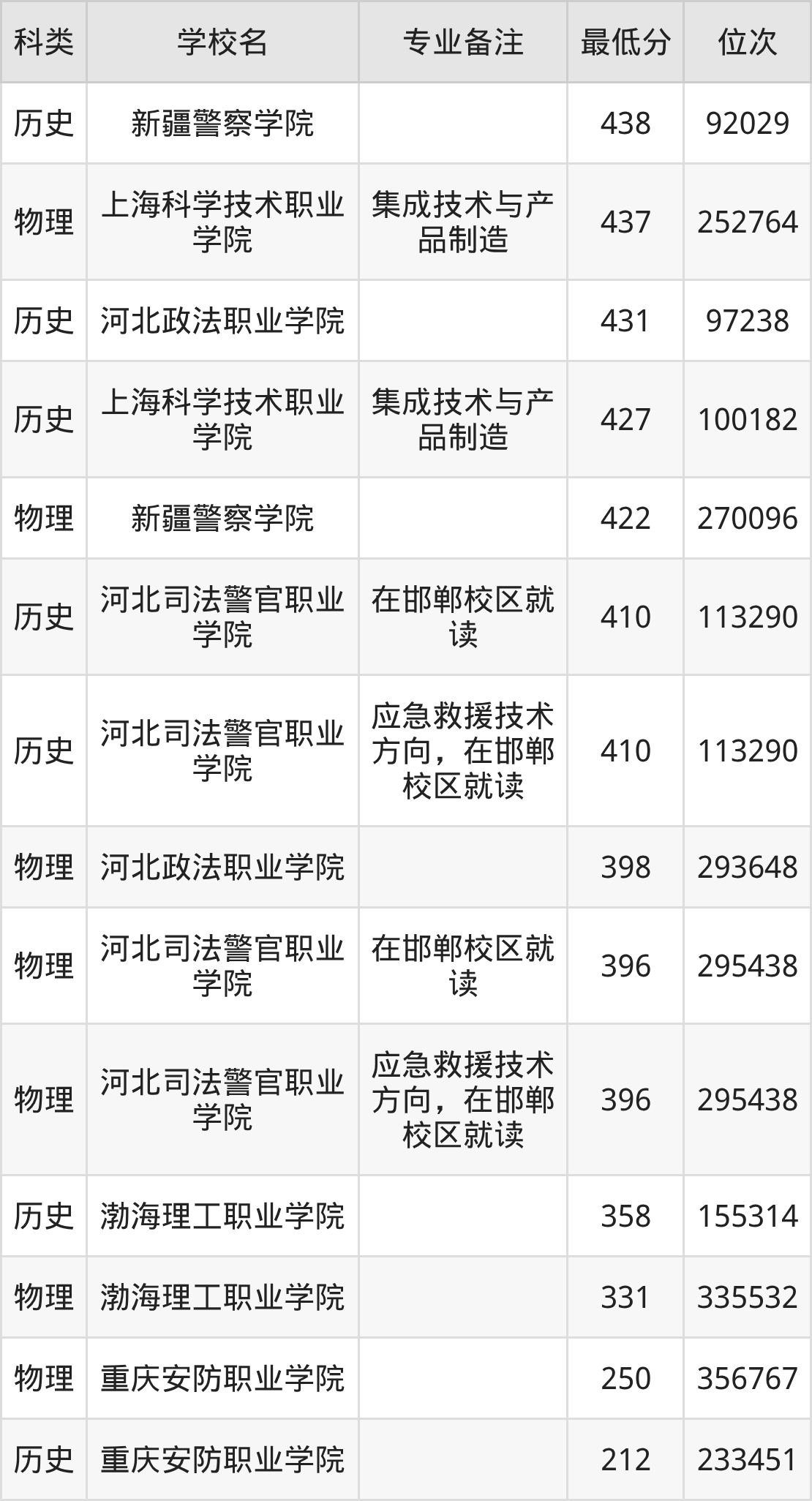 2025年全国大学安全防范技术录取分数线在212分~438分之间。数据显示,考生如果想报考公办大学,分数要在396分及以上,最低分院校有河北司法警官职业学院等。