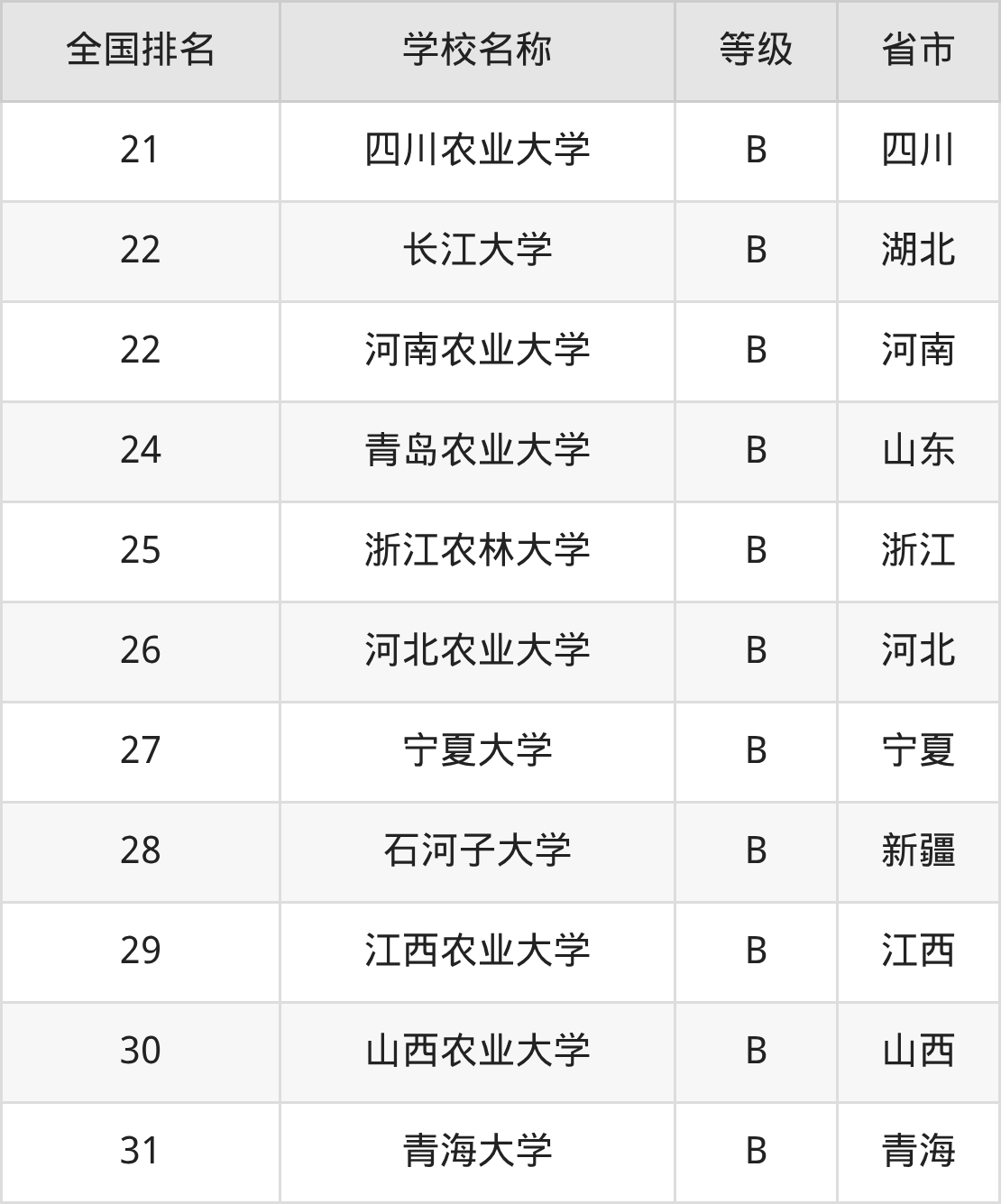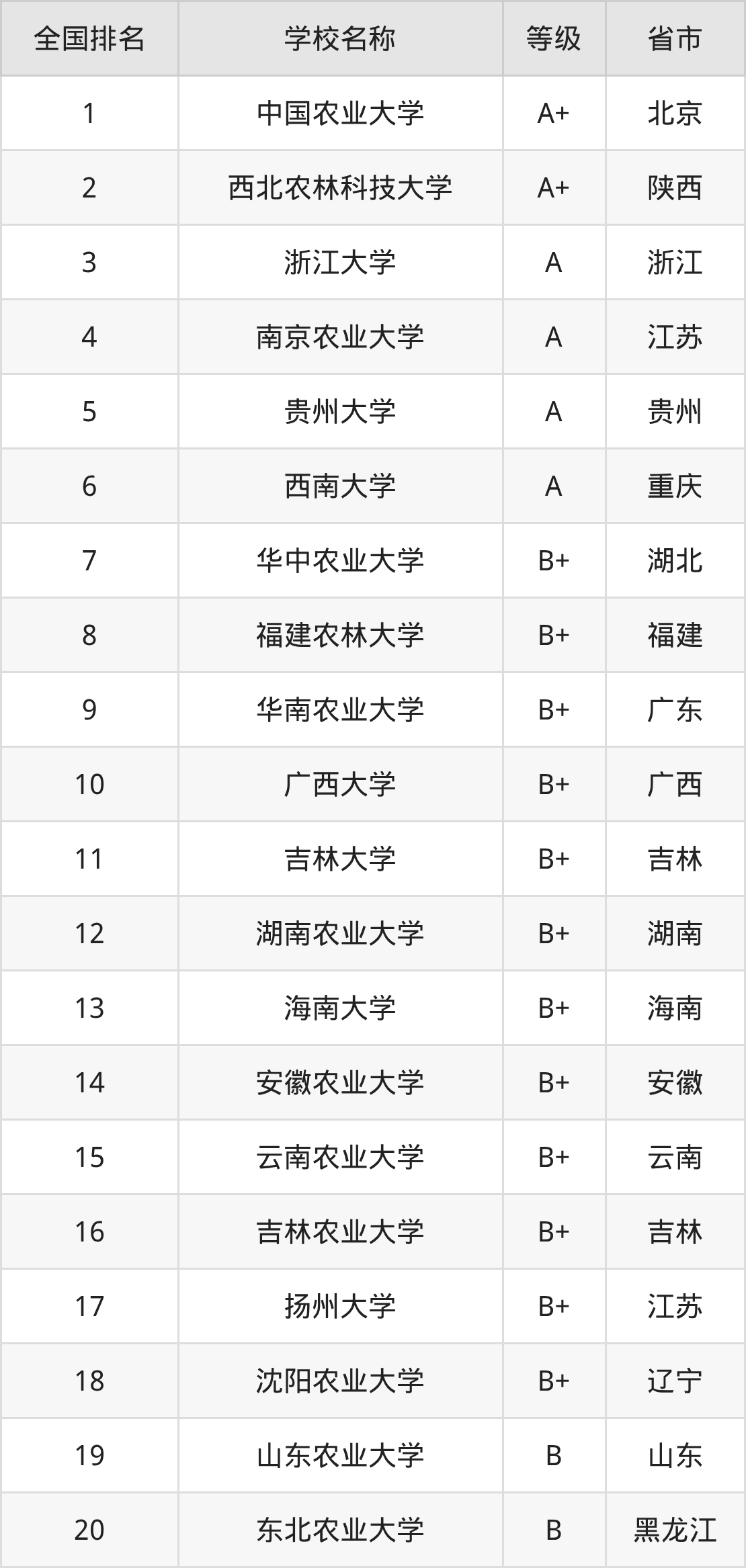 下面是植物保护专业全国排名前10的大学名单及实力评级: