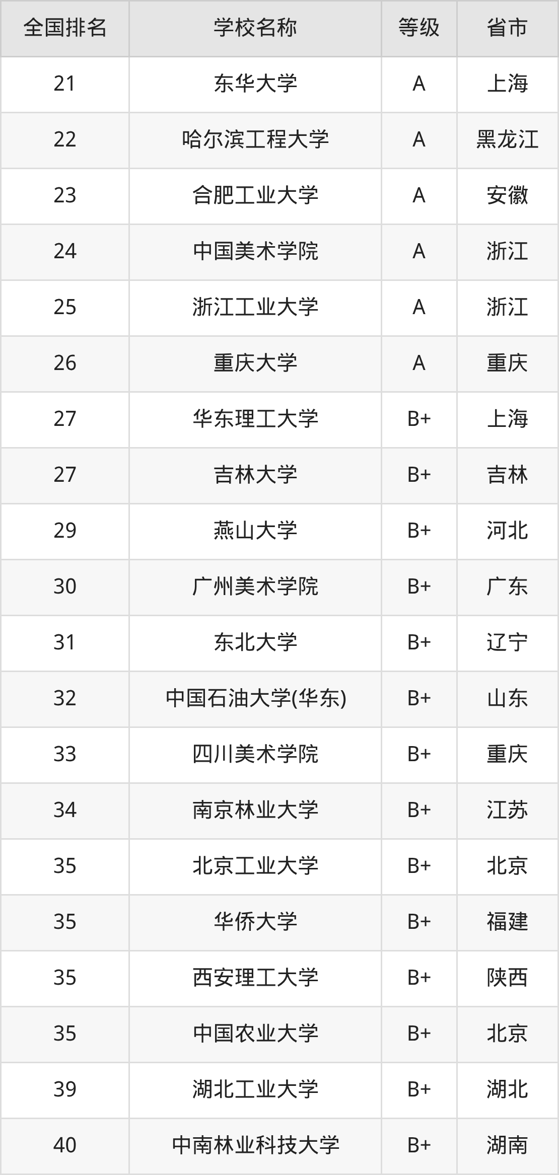 下面是工业设计专业全国排名前10的大学名单及实力评级: