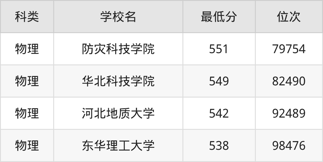 下面是2025年防灾减灾科学与工程录取分数线Top4一览表: