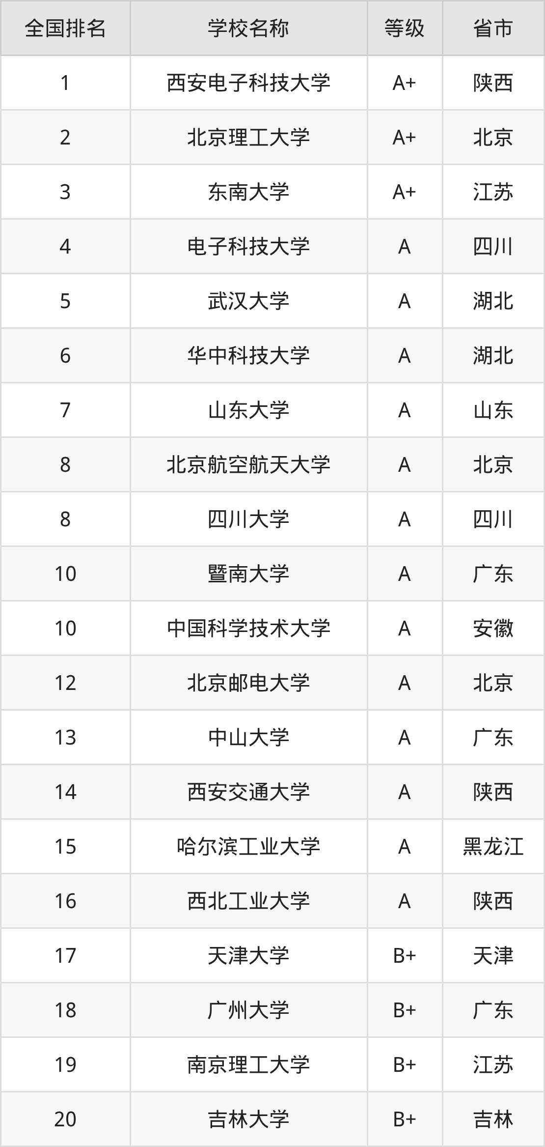 1、西安电子科技大学(A+级)