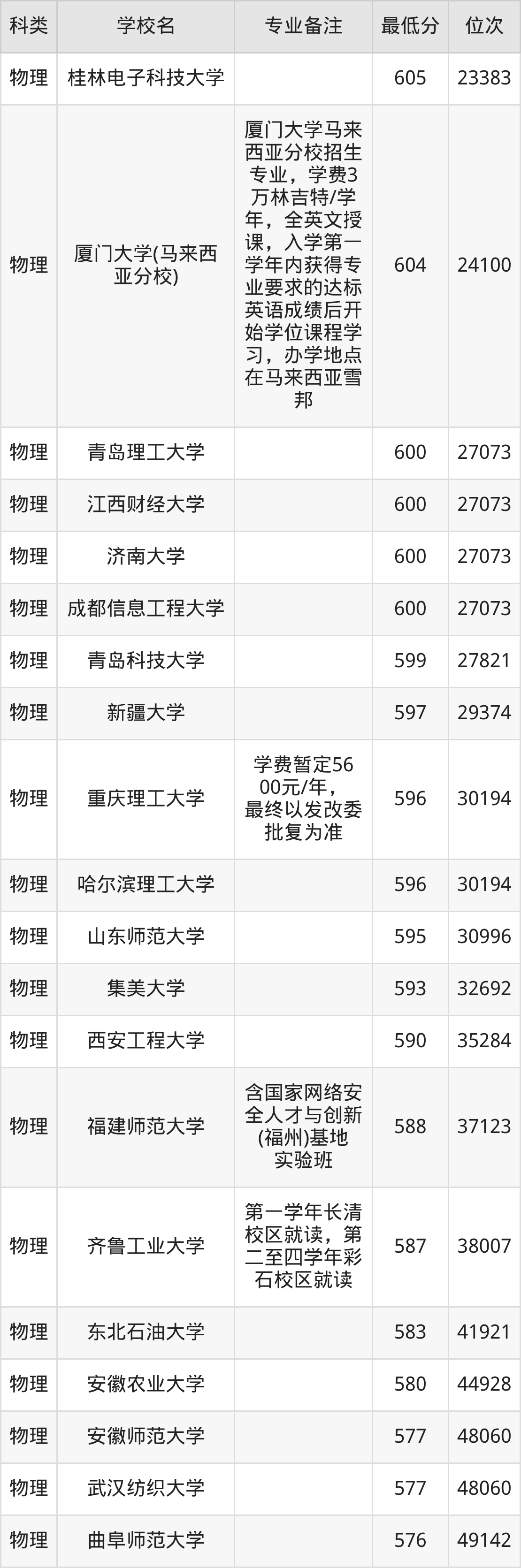 最新排名表可直接见下: