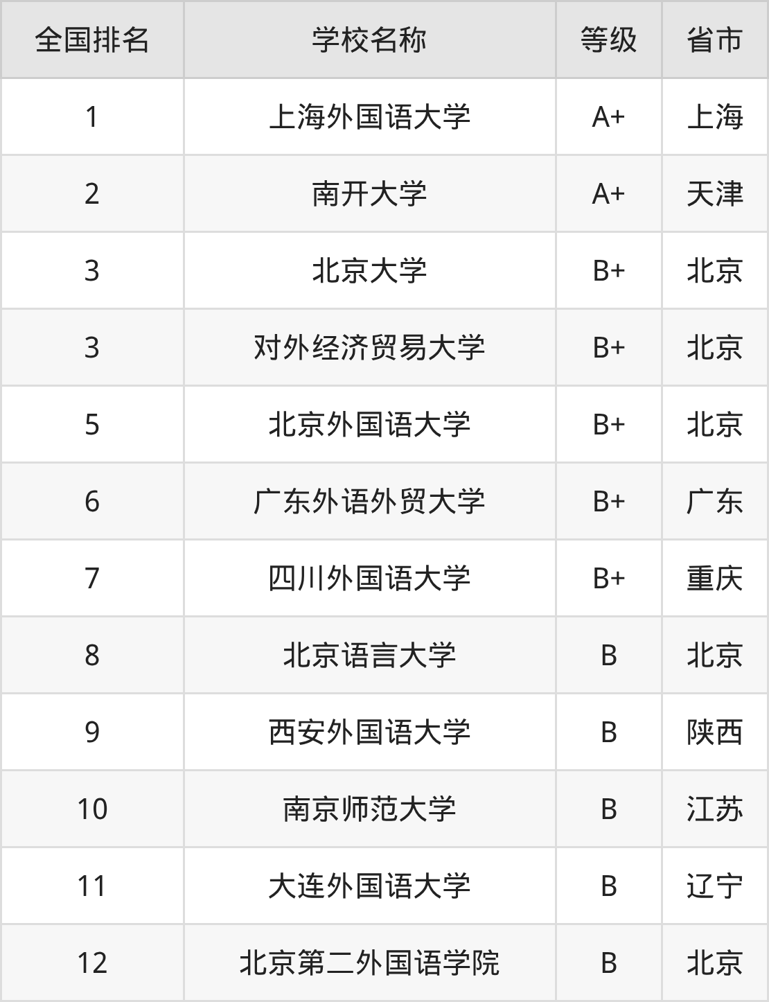 1、上海外国语大学(A+级)