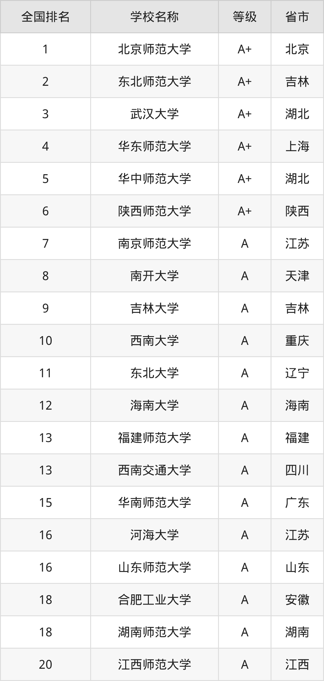 下面是思想政治教育专业全国排名前10的大学名单及实力评级: