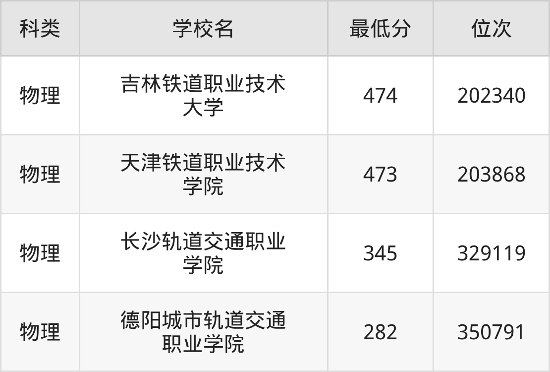 下面是2025年城市轨道交通车辆制造与维护录取分数线Top4一览表: