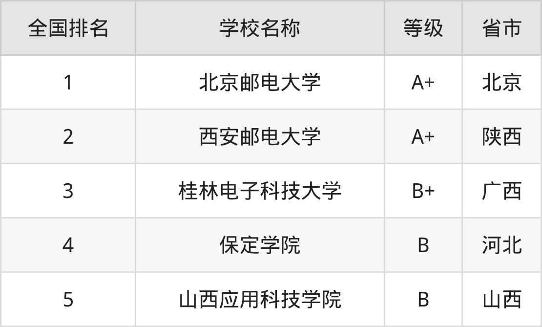 下面是电信工程及管理专业全国排名前5的大学名单及实力评级: