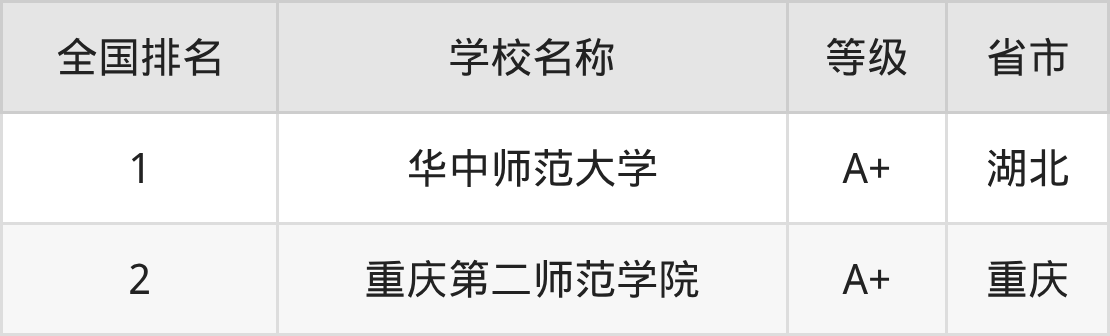 下面是融合教育专业全国排名前2的大学名单及实力评级: