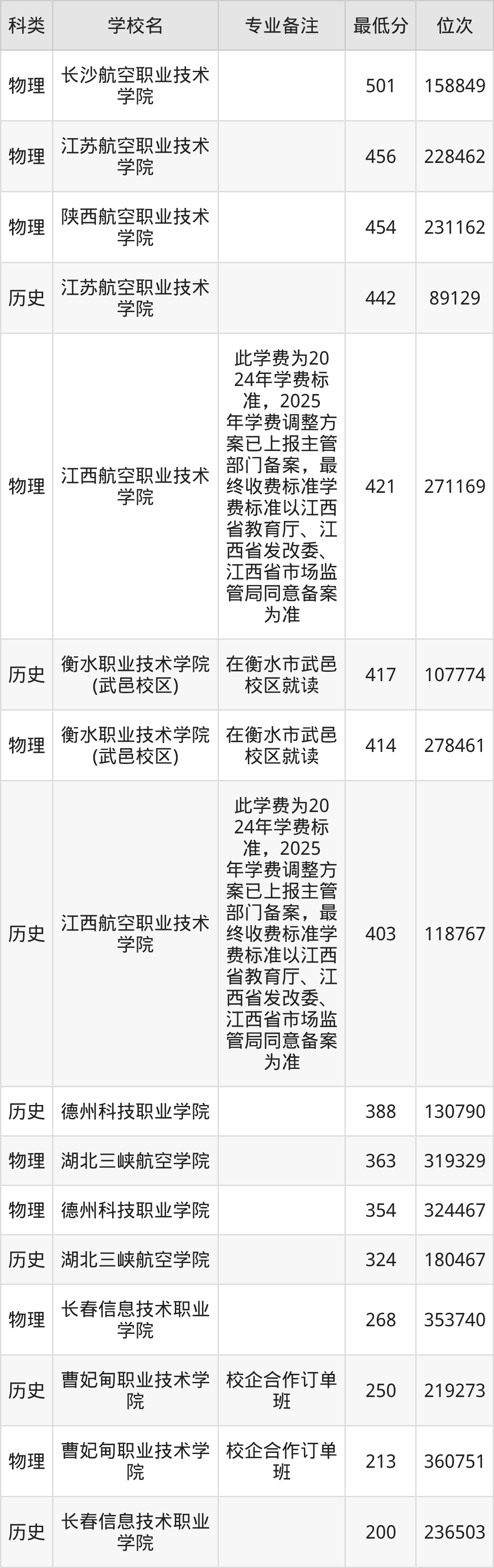 飞行器维修技术专业分数最低的民办大学是长春信息技术职业学院,其2025年最低分为200分,考生只要超专科线0分即有概率能被录取。