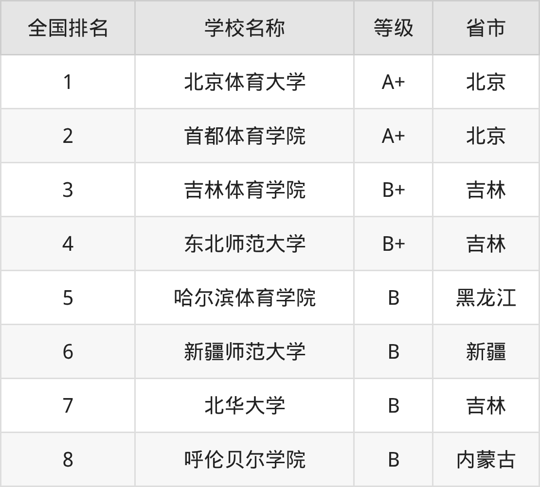 下面是冰雪运动专业全国排名前8的大学名单及实力评级: