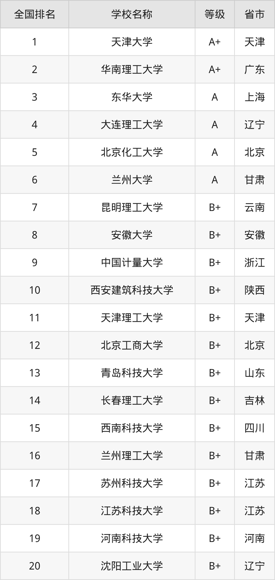 全国功能材料开设院校参与排名的共有34所,实力最强的是天津大学(全国排名第1名),其专业实力等级被评为A+级。